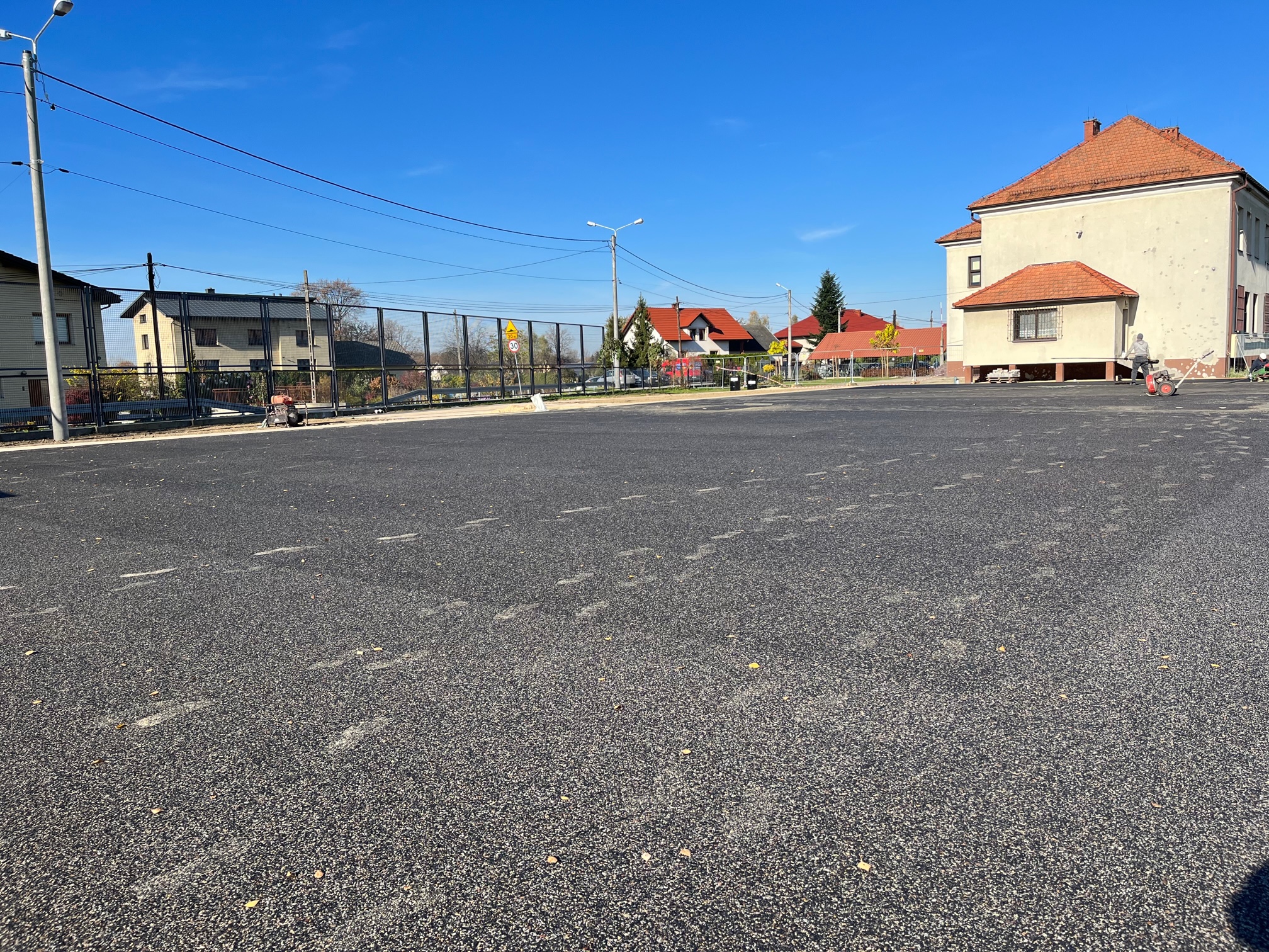 Sprzyjająca aura sprawiła, że prace związane z wykonaniem nawierzchni boiska przy Szkole Podstawowej w Bielanach idą pełną parą.