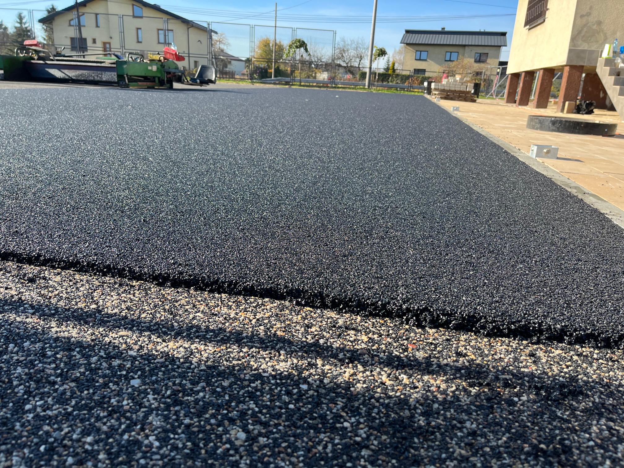 Dziś rozpoczęła się realizacja ostatniej warstwy podkładowej, a planowo prace zakończą się w dniu jutrzejszym. W kolejnym etapie boisko nabierze właściwych „kolorów”.
