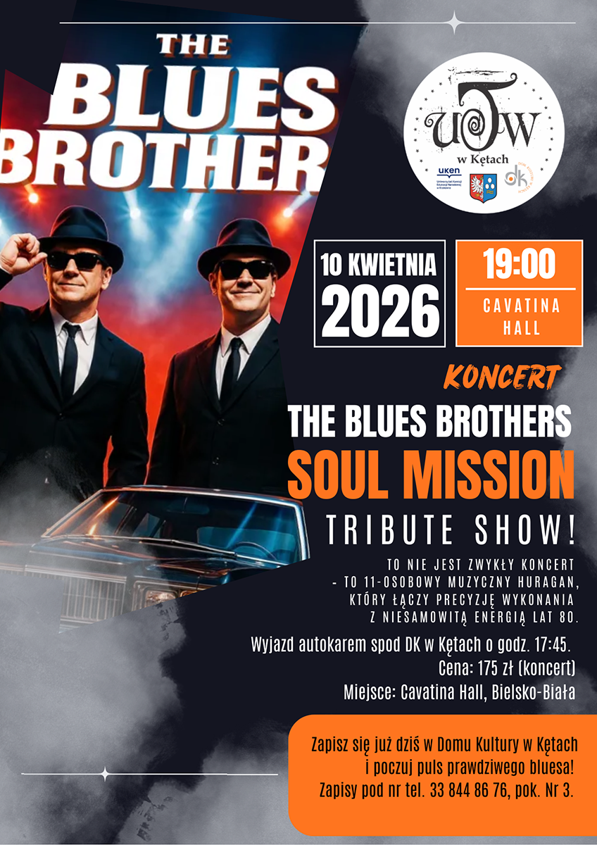 To niezwykłe muzyczne widowisko inspirowane legendarnym repertuarem The Blues Brothers. Na scenie wystąpi 11-osobowy zespół, który połączy precyzję wykonania z energią charakterystyczną dla muzyki bluesowej i soulowej. Publiczność usłyszy największe przeboje w dynamicznych aranżacjach nawiązujących do klimatu lat 80.